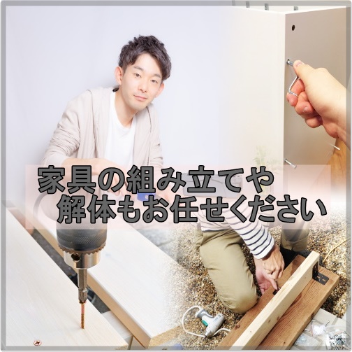 一人では対応できない大きなお部屋の家具の移動、荷物運びなどご指示いただければ対応いたします。